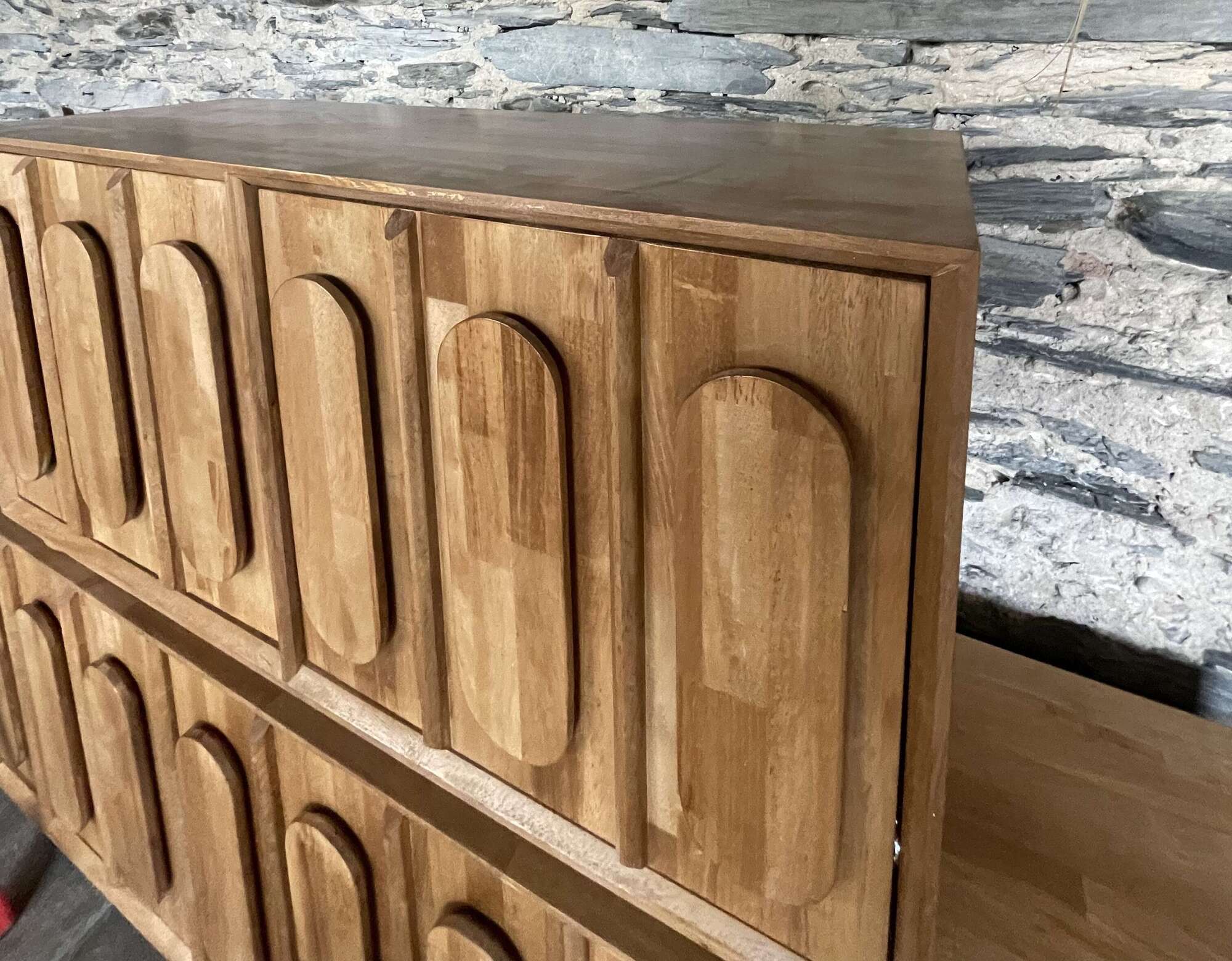 De cette expérience est née l’envie de créer une pièce qui reflète l’équilibre entre tradition et modernité : un meuble aux lignes épurées, où le bois exprime toute sa chaleur et sa richesse.